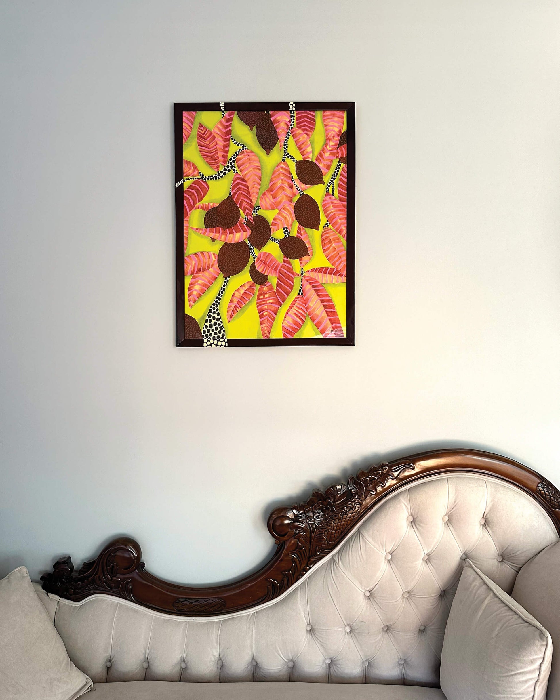 Surface: Cardboard in painted frame with glass cover